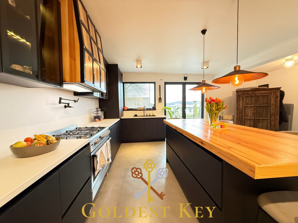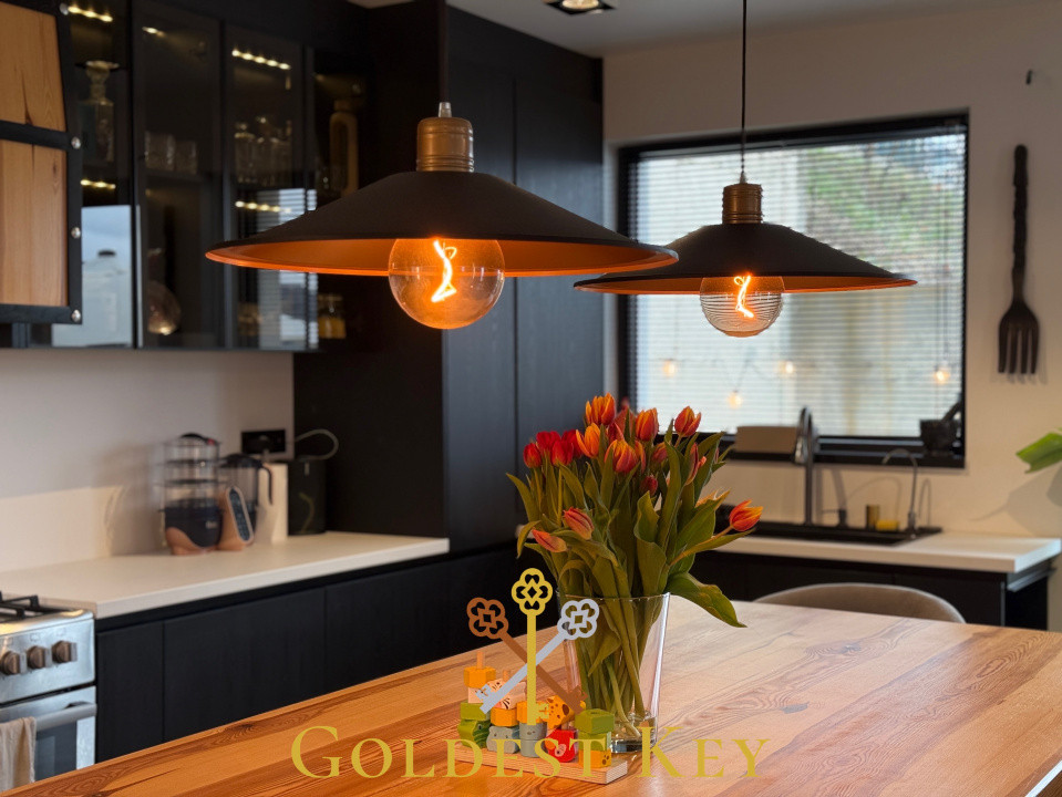 Casa a fost finisată, mobilată și utilată conform proiectului de design făcut în colaborare cu actualii proprietari.